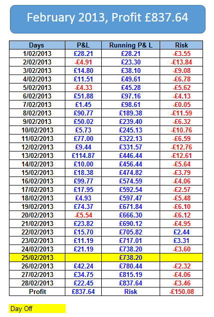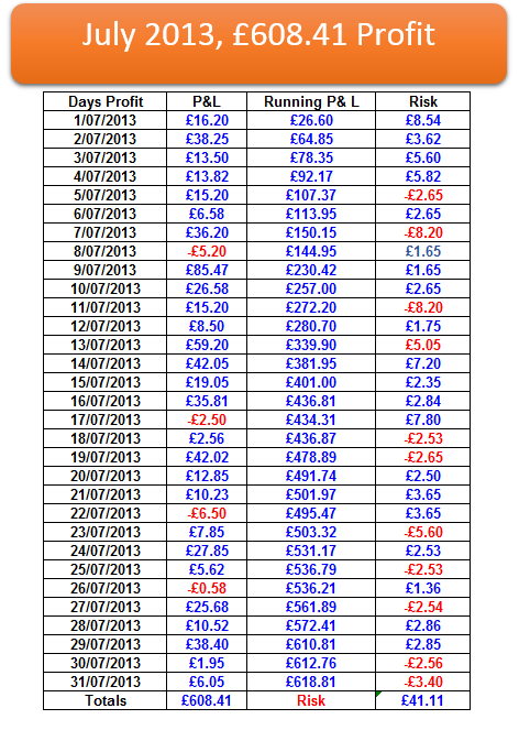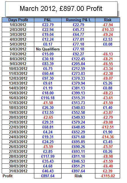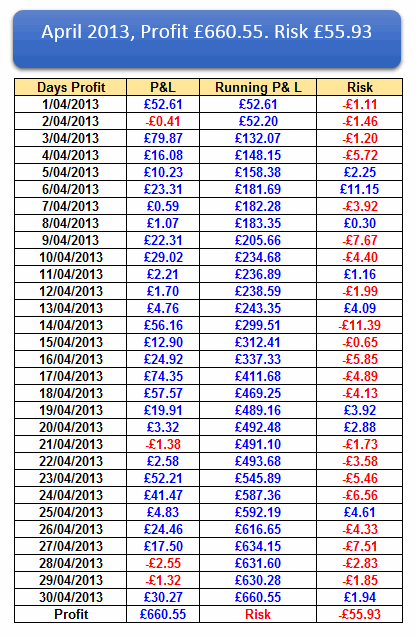 The Blue Figures in the Risk Column actual means we did not risk any money we would have won that much regardless on any results. In other words we could not lose!! |