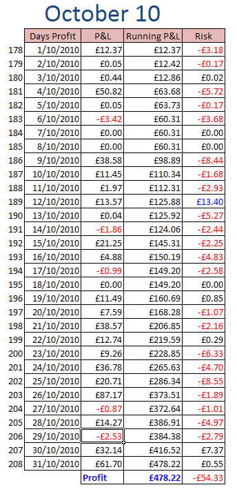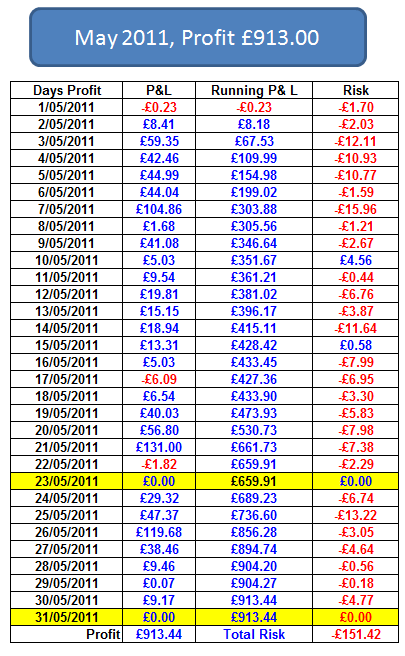 The Blue Figures in the Risk Column actual means we did not risk any money we would have won that much regardless on any results. In other words we could not lose!! |
